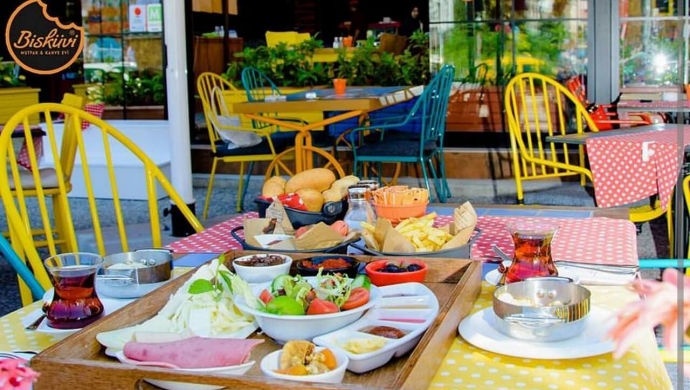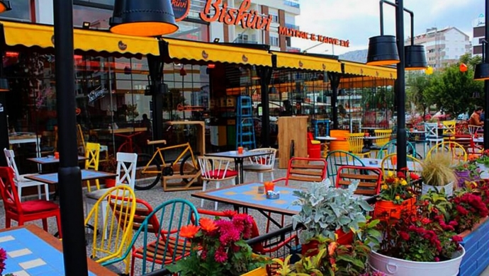Кафе Biskuvi в районе Коньяалты, Лиман, считается одним из замечательных кафе как для молодежи так и для семей.