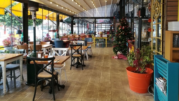 Здесь предлагают турецкие и западные блюда и завтраки, а также сладости, холодные и горячие напитки.