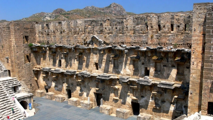 В Аспендосе находится один из лучших античных театров, римский театр Аспендос, который завораживает туристов и посетителей со всего мира, вмещает от 15 000 до 20 000 зрителей и имеет высоту 315 футов.