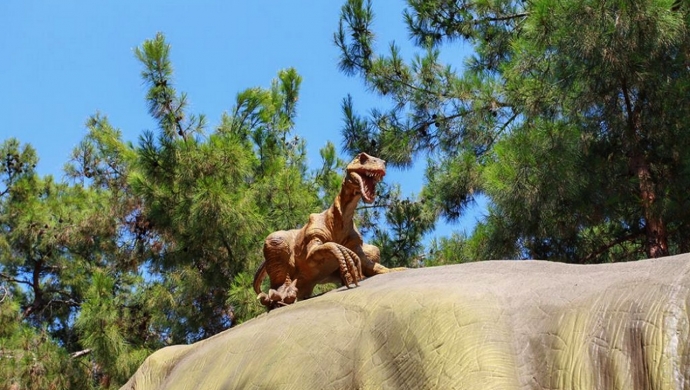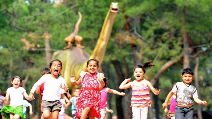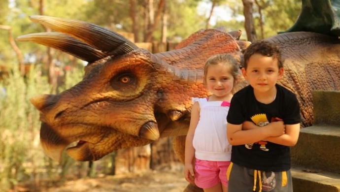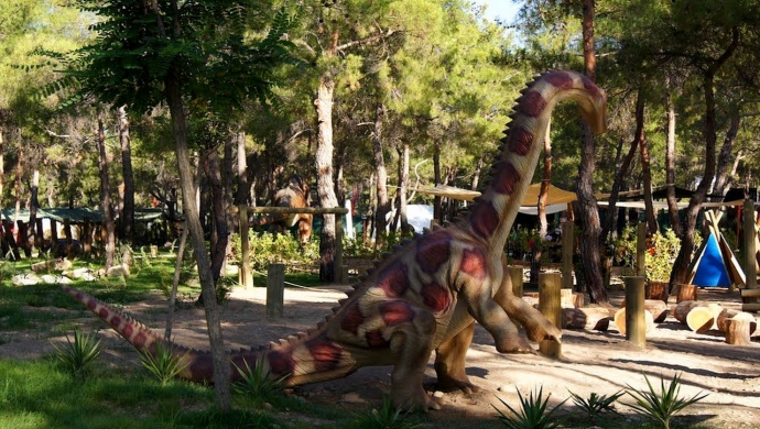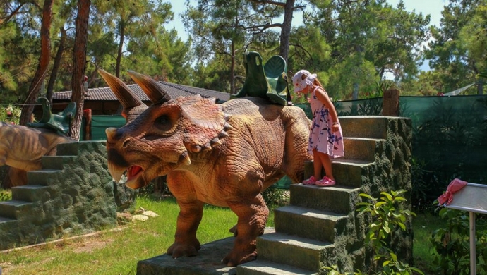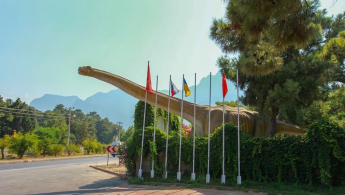 Динопарк расположен на главной дороге между Анталией и Кемером, в 40 км от центра Анталии, а площадь парка составляет 30 акров.
