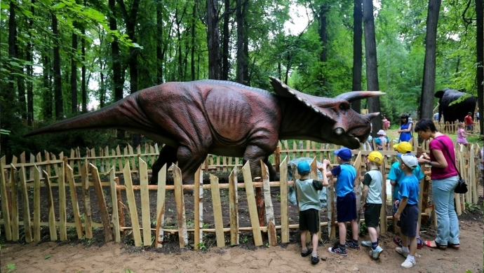 Существует более 25 полноразмерных фигур динозавров, некоторые из которых движутся и имеют звуковые эффекты. Есть также несколько динозавров меньших размеров с сиденьем наверху, где могут сидеть дети. Есть много затененных территорий для взрослых, чтобы те могли расслабиться или прогуляться.