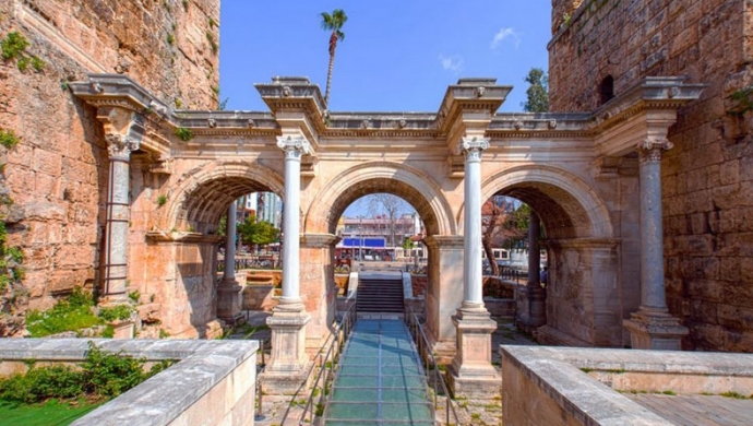Одной из важных и очень известных туристических достопримечательностей в Анталии являются Ворота Адриана.Эти исторические ворота были построены в 130 году нашей эры в качестве подарка римскому императору Адриану и в ознаменование его визита в сегодняшнюю Анталию. Эти ворота состоят из трех арок и оцениваются в восемь метров в высоту. Портал до сих пор считается одной из самых известных и посещаемых туристических достопримечательностей Анталии.